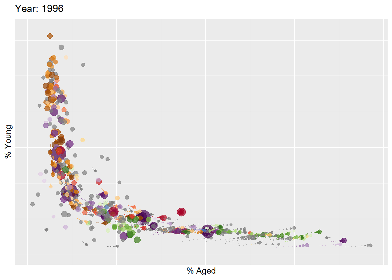 ggplot(globalPop, aes(x = Old, y = Young,